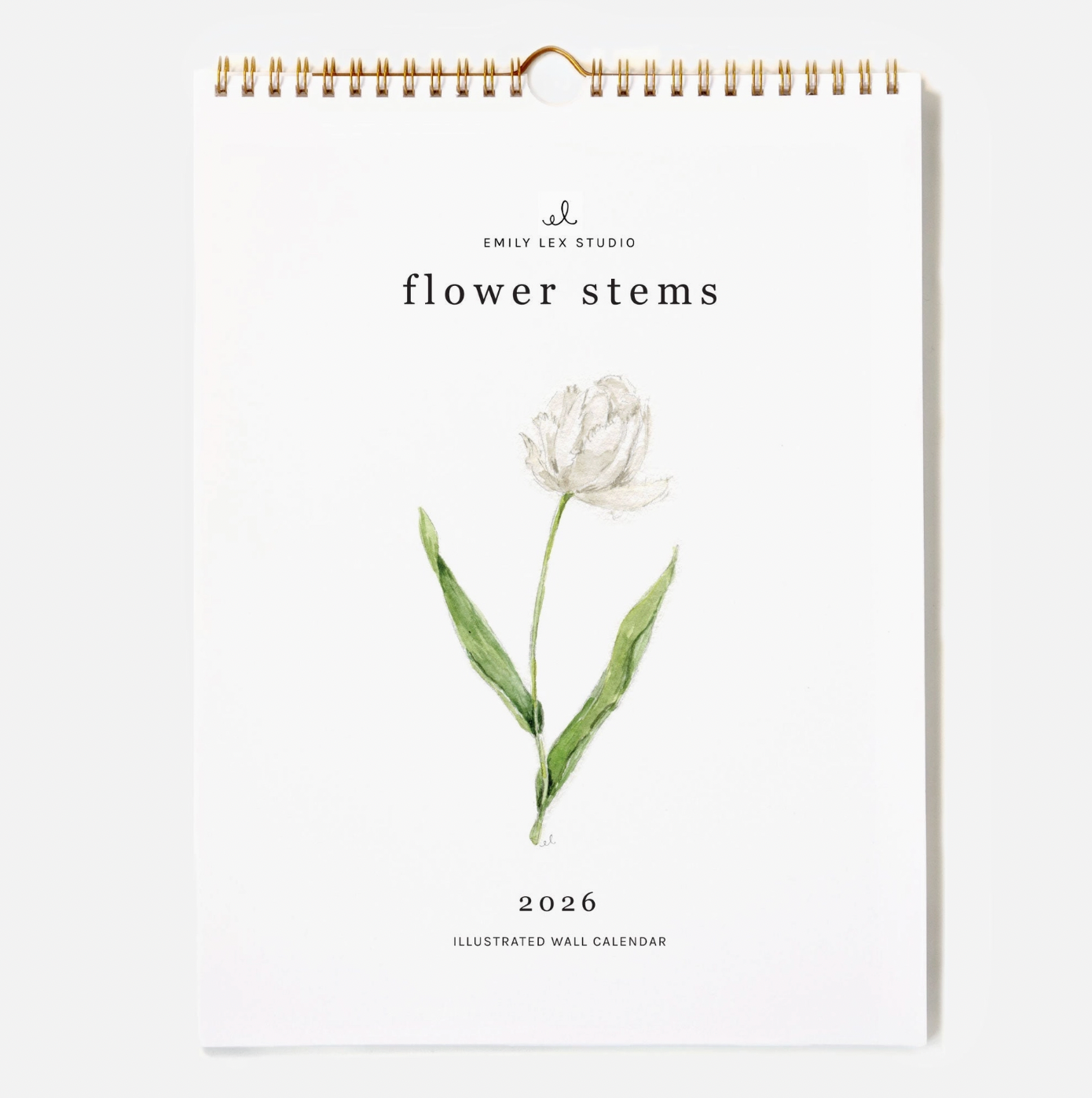 • Enjoy a pretty flower stem for each month of the year! The Flower Stem Calendar features 12 watercolor flowers with the month and dates added for easy reference. The gold spiral binding and center notch makes hanging simple.