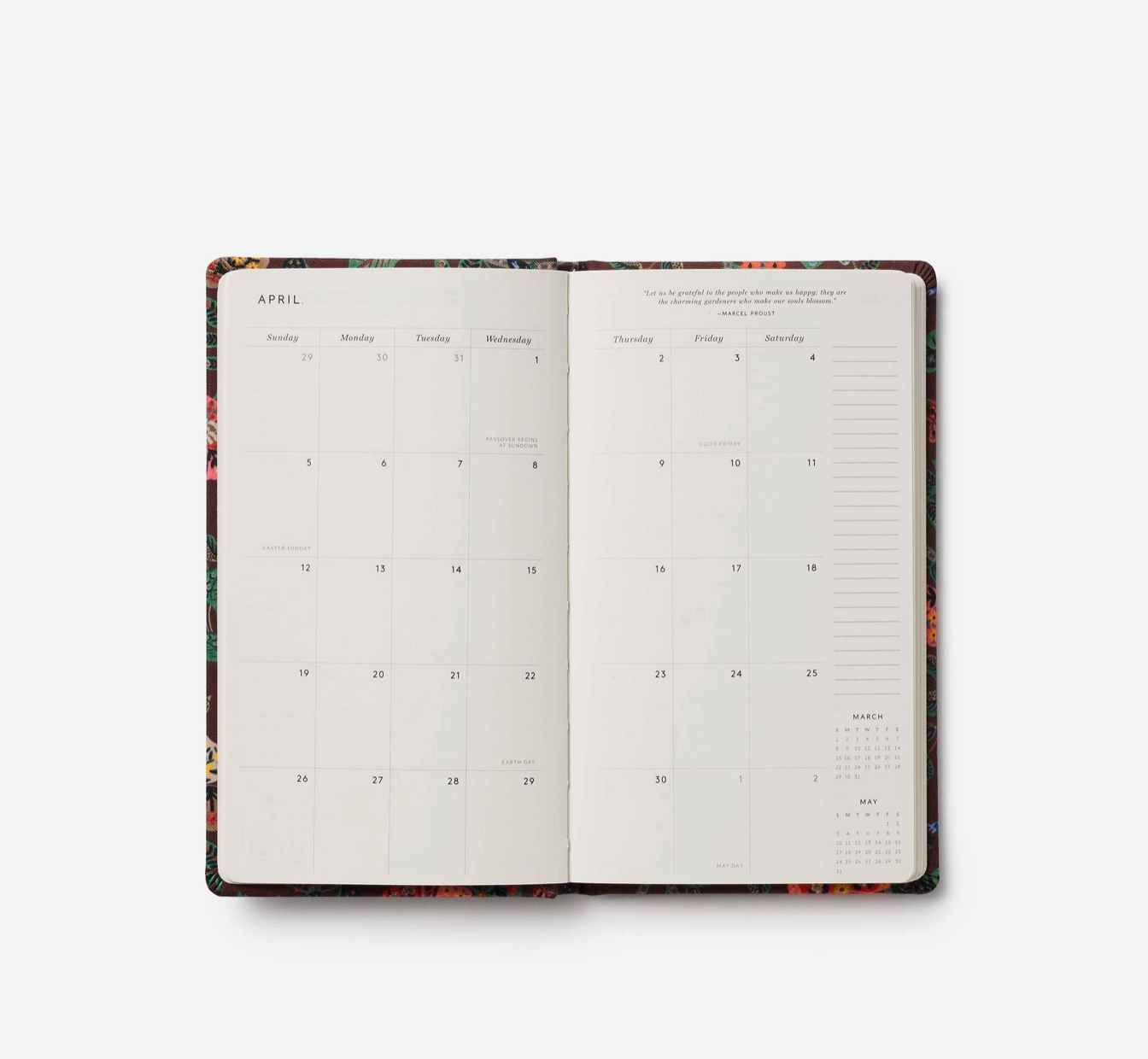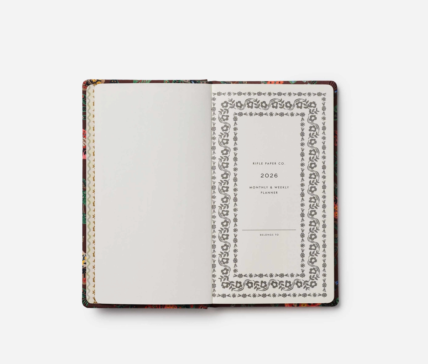 Great things come in small formats. The smallest planner in our lineup, our pocket planner features a hard, fabric-wrapped cover, monthly and bi-weekly page views, sections for important dates and notes, and illustrated interior pockets. Planner spans January - December 2026.