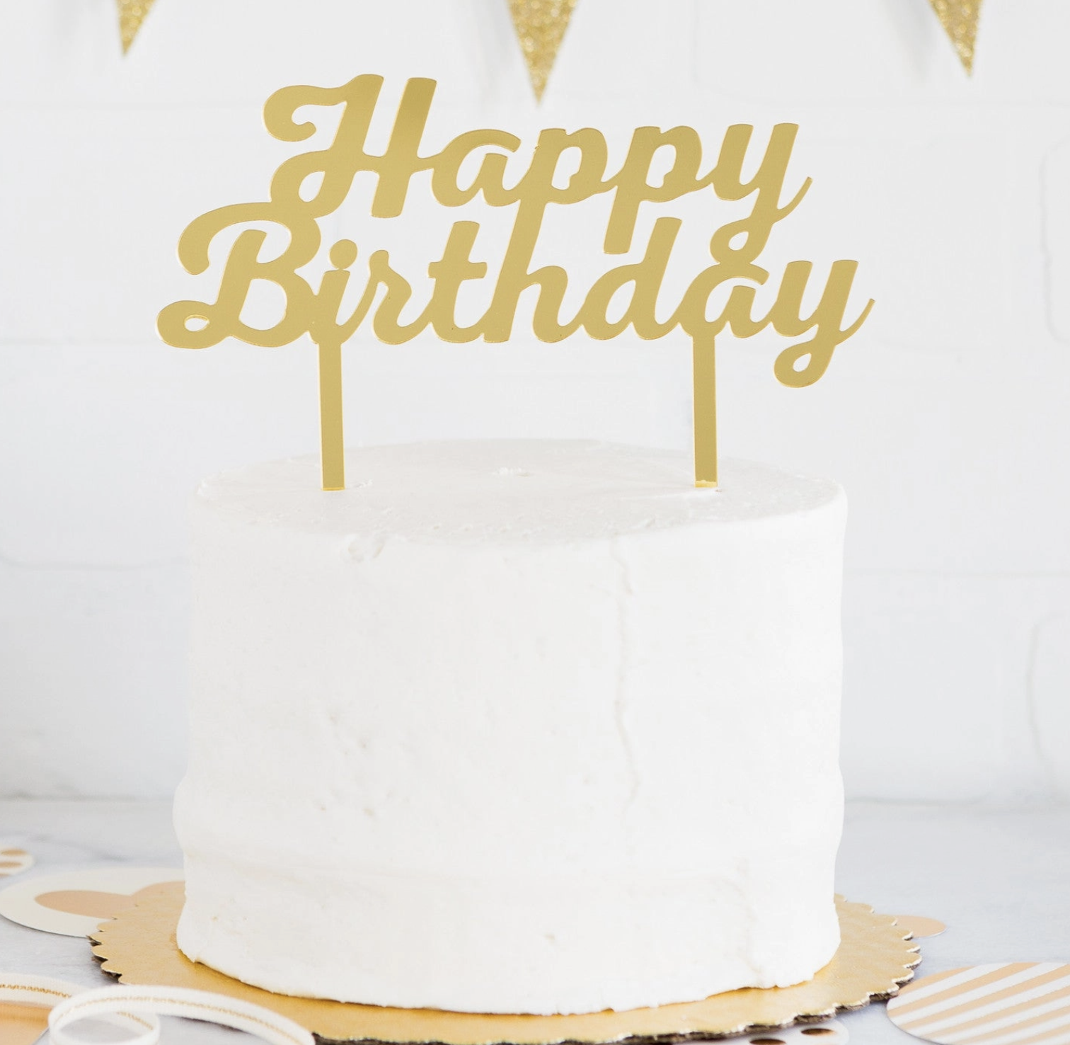 Gold mirror acrylic cake topper. 6 3/4 x 6 1/2