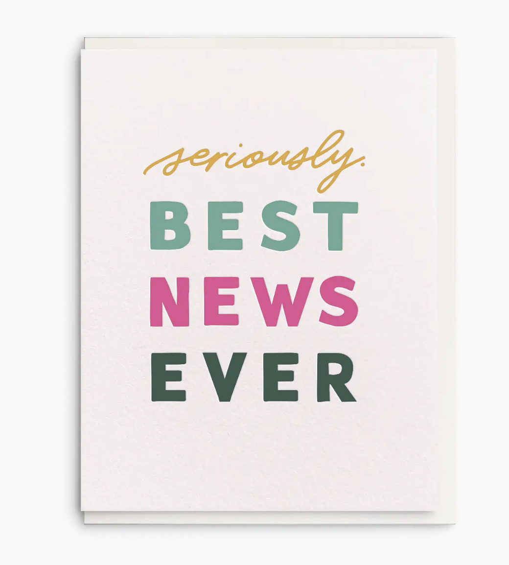 CELEBRATE THEIR BIG NEWS RIGHT! Show them you’re their #1 cheerleader with this fun card! It’s the perfect space for writing down your heartfelt thoughts to a friend or loved one as they celebrate good news. Blank inside for your personal message, this greeting is hand illustrated and letterpress printed on plush paper, and comes with a coordinating envelope. Single, hand illustrated greeting card letterpress printed on plush 100% cotton paper. Made in the USA. includes: 1 card + 1 envelope // size: 4.25 x 5.5" folded //