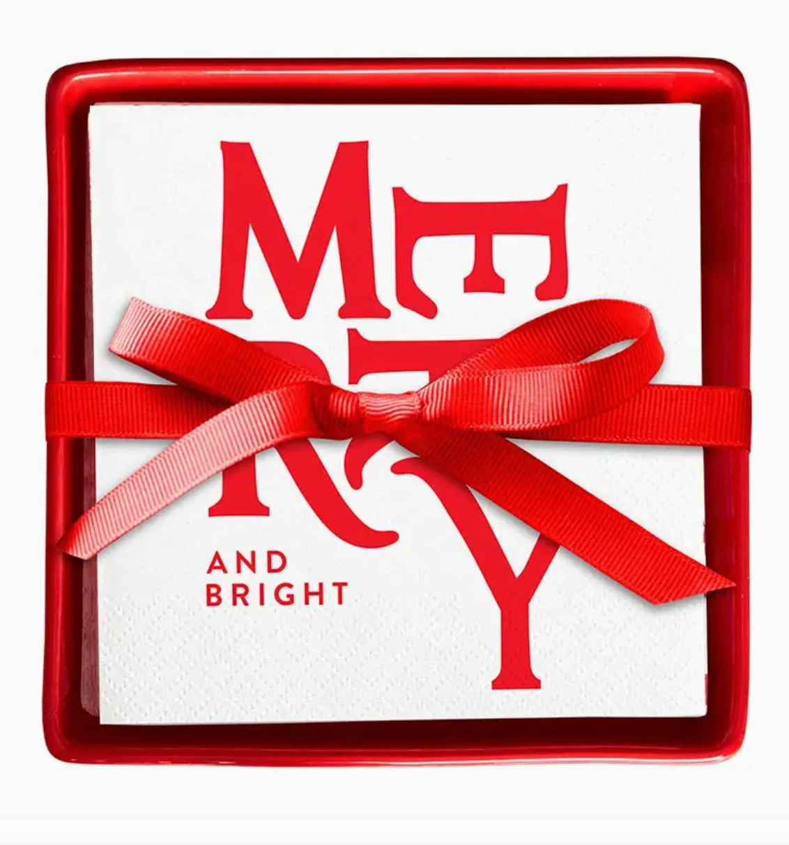 This ceramic napkin tray with paper cocktail napkins is a stylish and practical accessory for organizing and presenting napkins during social gatherings or special occasions. · Designed to hold and display paper cocktail napkins · Adds a touch of sophistication to your table setting