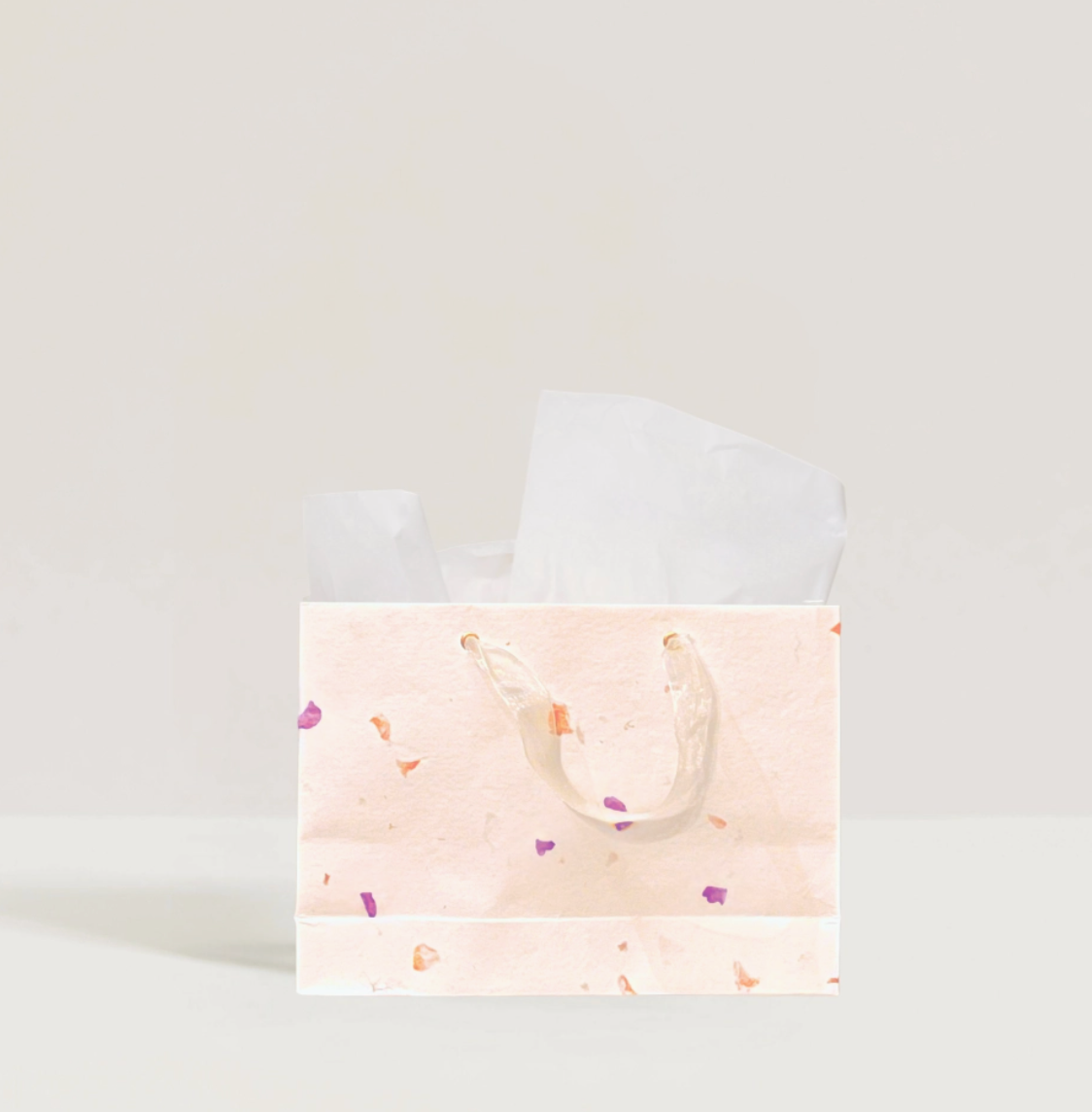 A gift within a gift. Wrap your gift in something as thoughtful as what’s inside. Our signature gift bags feature our plantable handmade paper gift bags, crafted from recycled cotton rag and embedded with wildflower seeds. Each bag is a gift in itself—after use, it can be planted to grow beautiful blooms.