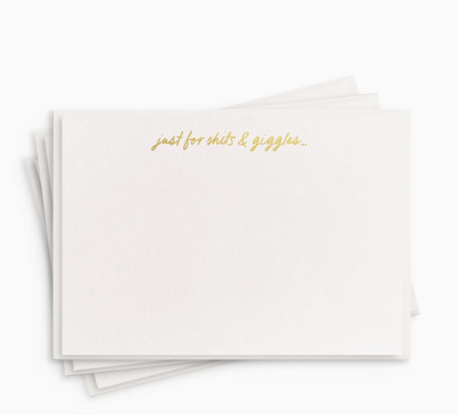 Set of eight, gold foil flat notecards printed on plush 100% cotton paper. Made in the USA. includes: 8 cards + 8 envelopes // size: 3.5 x 4.875" flat notes // packaging: clear plastic box //