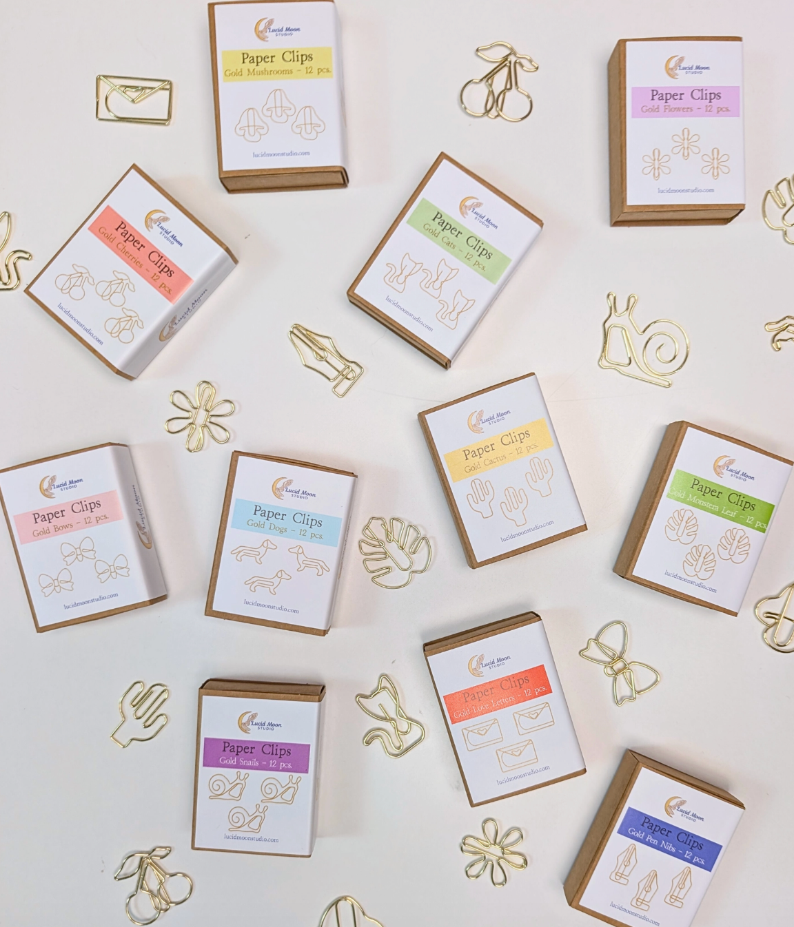 Brighten your day (and your desk) with these gold flower-shaped paper clips! Designed to add a little bloom to your paperwork, planner, or pen pal letters, each set of 12 comes packaged in a charming kraft matchbox-style box. These clips are perfect for spring vibes, teacher gifts, or anyone who wants their stationery stash to feel a little more joyful.