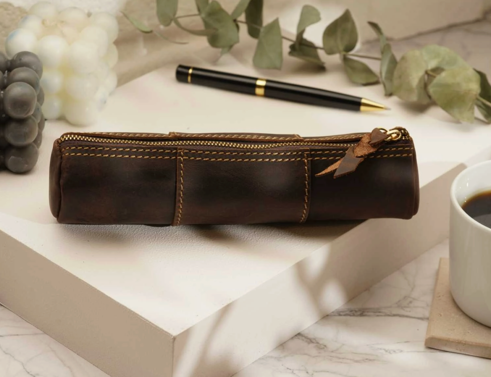 Genuine leather Make-up Brush Holder *Easy to Use *Crazy horse Leather