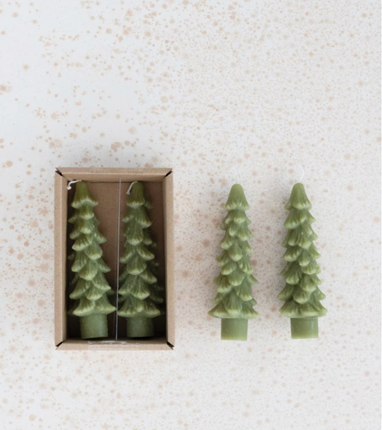 Add a touch of sculptural beauty to the home with these unscented, textured tree-shaped taper candles. Each candle in this set of two is designed to evoke the serene essence of a winter forest, with a burn time of approximately 3 hours to last through every event or meal. Crafted from the finest wax and featuring a cotton wick, they burn cleanly and evenly, casting a warm and inviting glow. At 4.75 inches tall, they are the perfect centerpiece for the table or a thoughtful addition to any room's ambiance. Choose from aqua and other colors to create the perfect match for the home's palette. A pair of unscented, tree-shaped taper candles, textured to perfection and available in aqua. Unscented candle for a clean and pure burn. Approximate burn time of 3 hours.