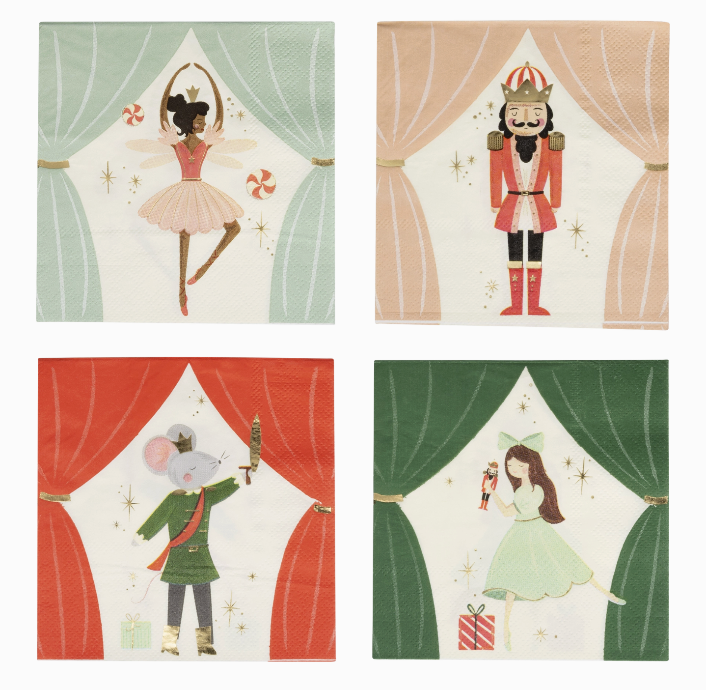 Crack open some holiday cheer with our nutcracker napkin set! Perfect for adding a playful touch to your festive table, these napkins feature delightfully dressed nutcracker characters. Set includes 16 napkins.