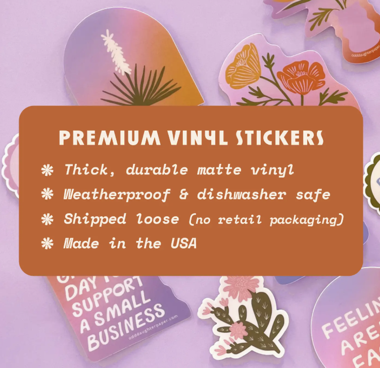 1 individual 5x7" matte laminate sticker sheet that is weather and water proof! Each sheet comes with the following 10 stickers: