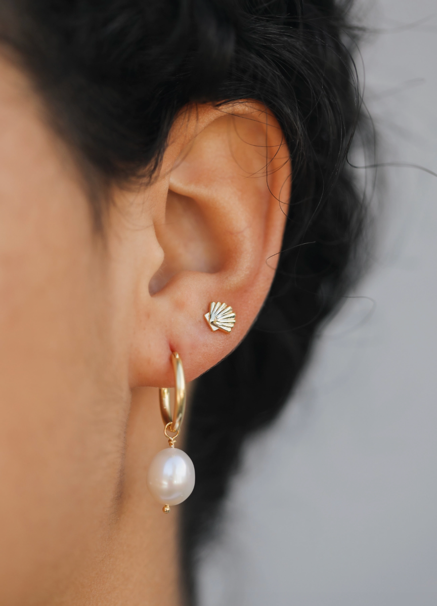 Our petite seashell earrings with etched detailing are lightweight, and perfect in first, second or third piercings. Pair with your favorite gold hoops or studs for the ultimate ear stack.