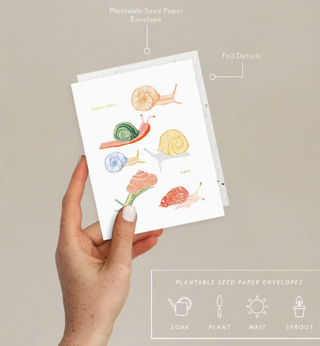 • All Seedlings greeting cards have foil details and a PLANTABLE seed paper envelope which is embedded with wildflower seeds. This seed paper is made of a biodegradable eco-paper created with post-consumer materials - no trees harmed for this paper!