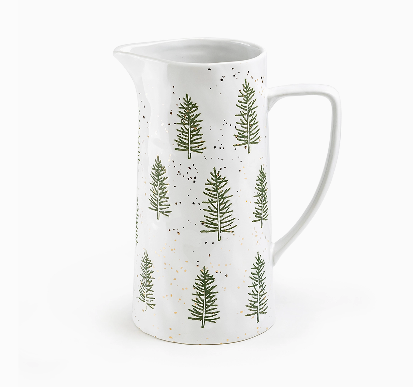 • The Snowy Pine Trees Pitcher combines festive charm with everyday functionality. Adorned with engraved pine trees and highlighted by delicate gold specks that evoke the sparkle of snow, this pitcher brings a wintery elegance to your holiday table.