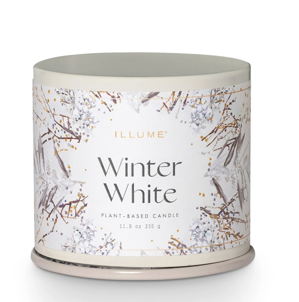 Designed as a pop of pattern, our vanity tins have a full wrap label on textured stock, interior pattern with metallic details, and a color rolled edge to complement the colored wax.